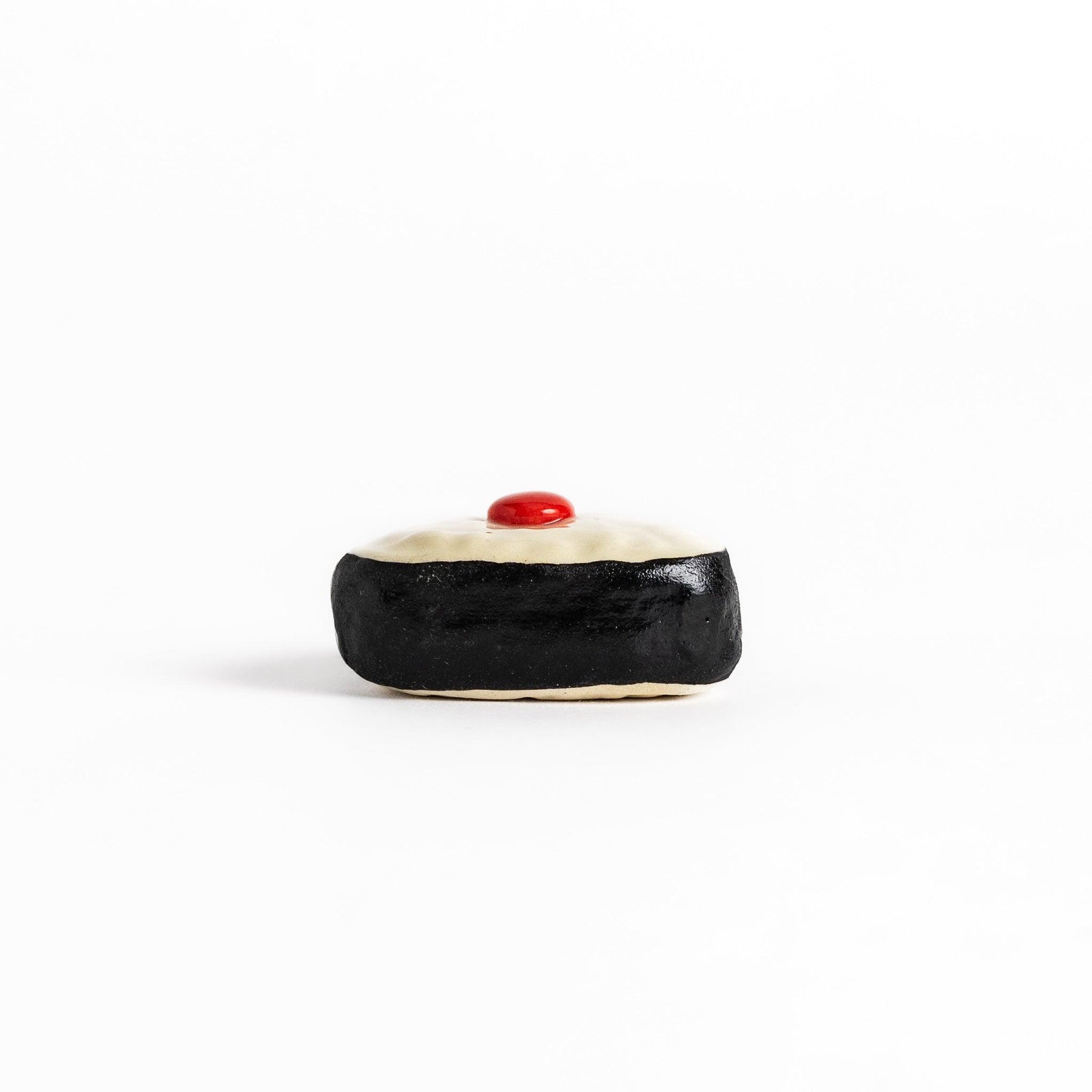 The Pickled Plum Onigiri Chopstick Rest is so realistic it may have your guests looking twice. With its triangular shape, glossy black nori, and a bright red pickled plum nestled in the center, it perfectly mimics the look of a freshly made rice ball. The textured surface even suggests grains of rice, adding to its lifelike charm.