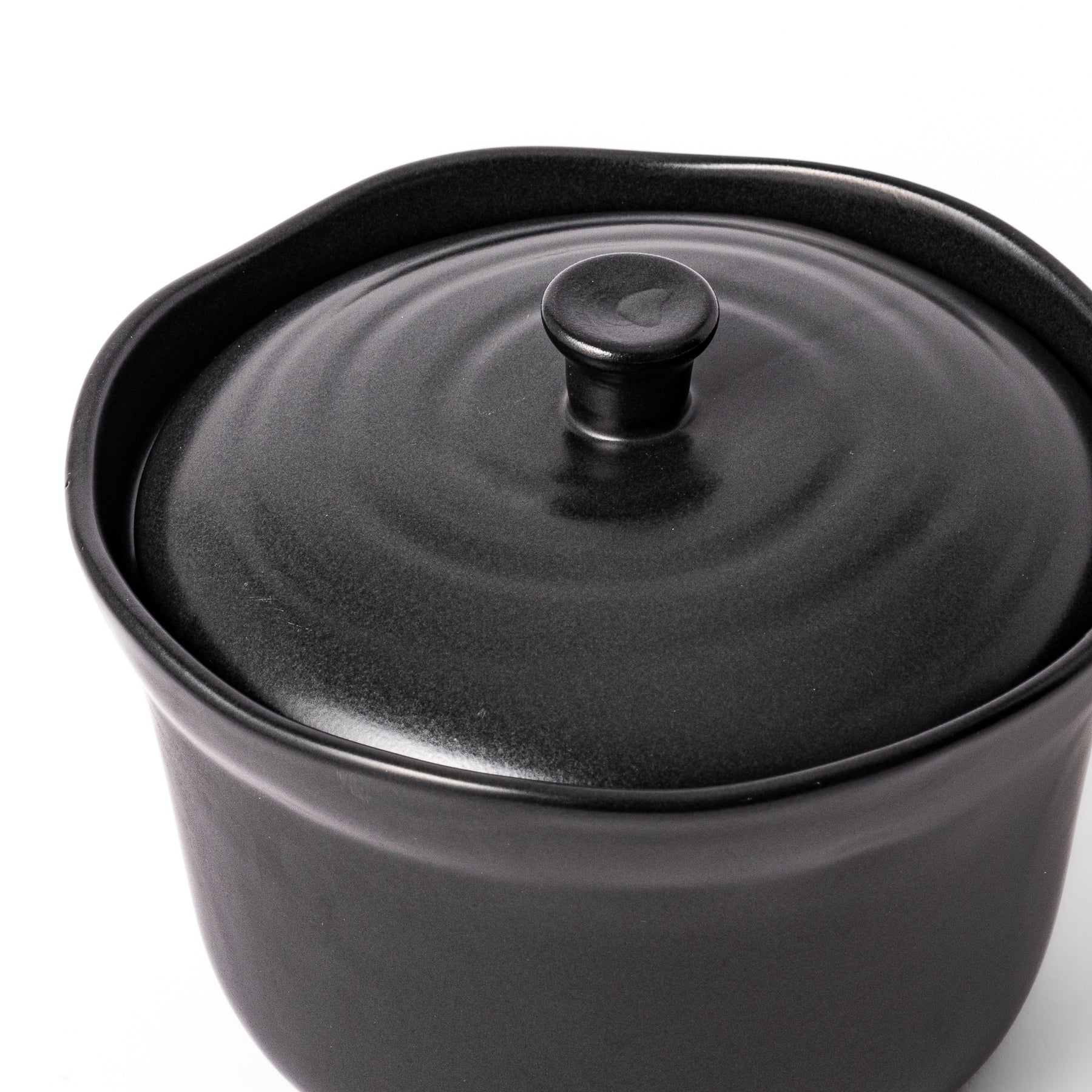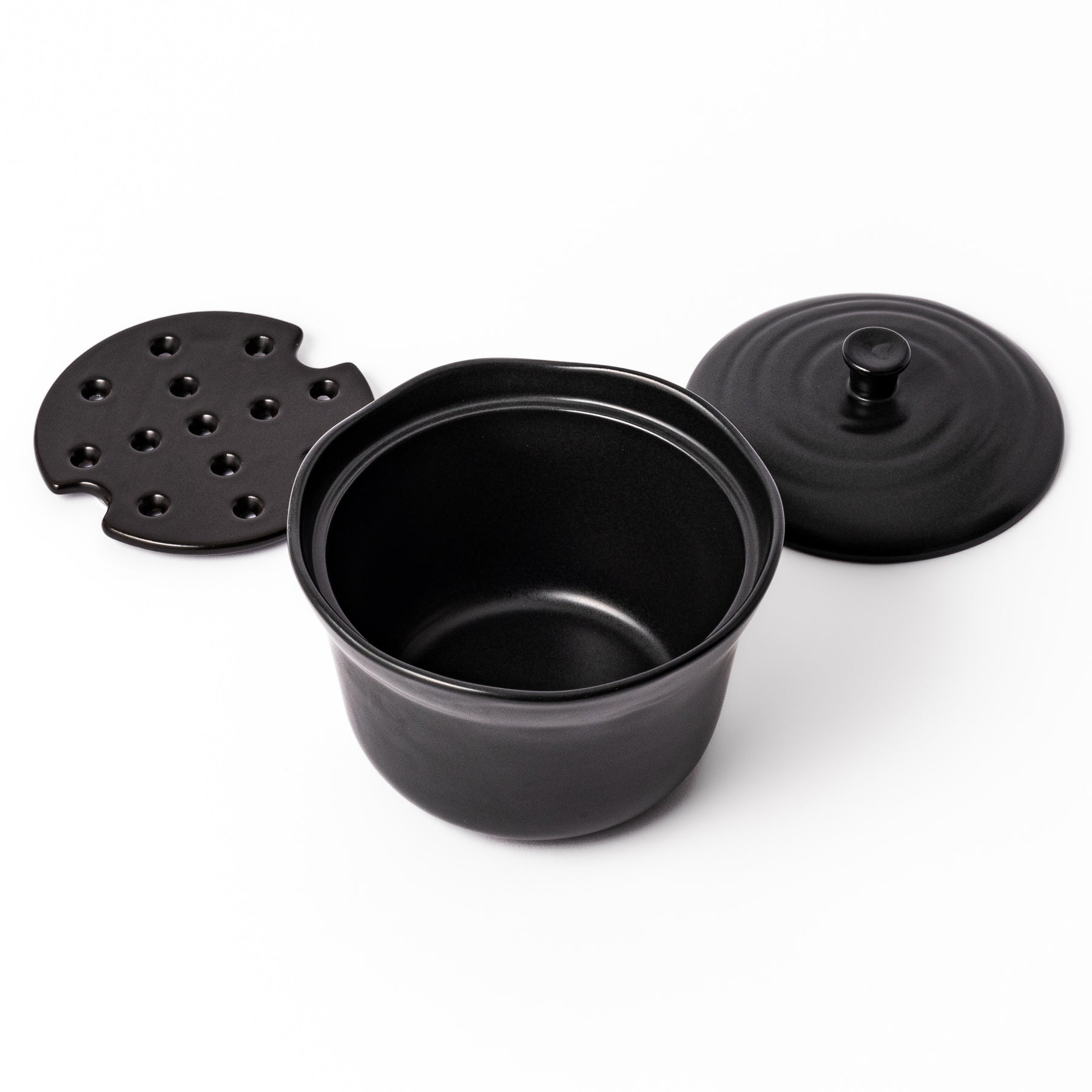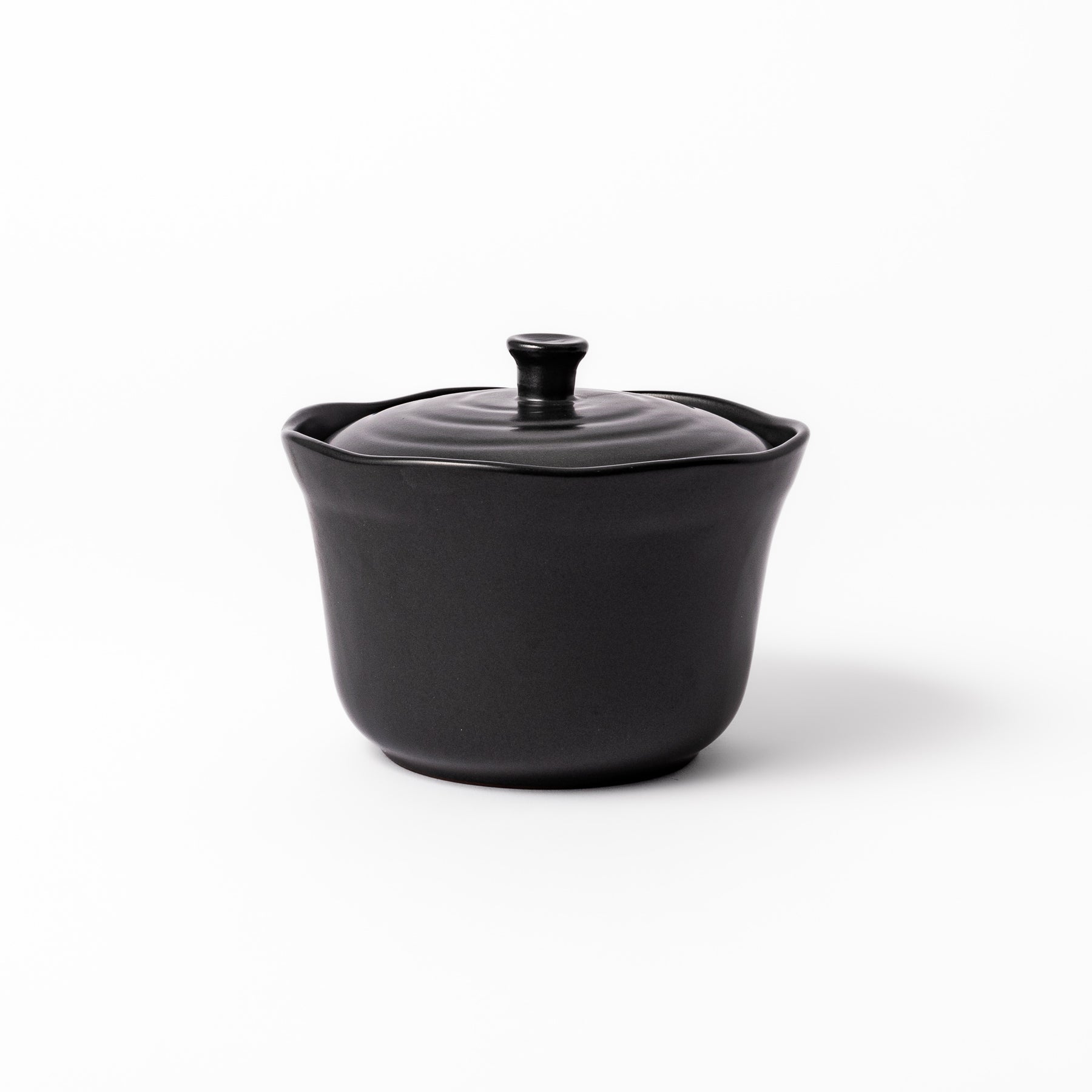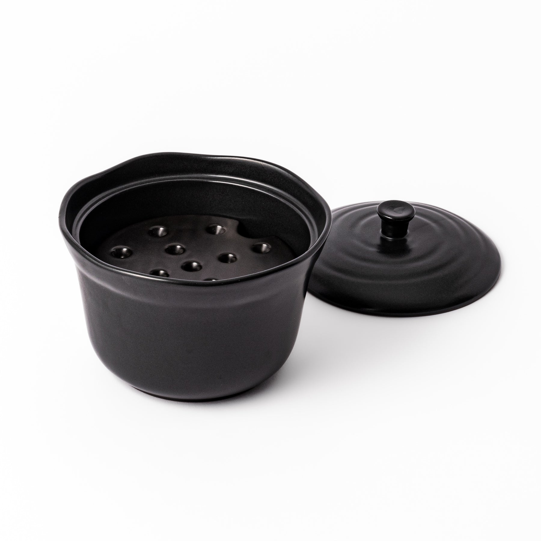 Freshly steamed rice, any time you want it. The Black Ceramic Floral Ridge Rice Storage Bowl (Ohitsu) is designed to preserve and revive rice with ease, turning chilled grains back into fluffy perfection. Its softly ridged, flower shaped rim and sleek black glaze bring quiet elegance to the table, while the unglazed interior absorbs excess moisture to restore light, tender texture when reheated.