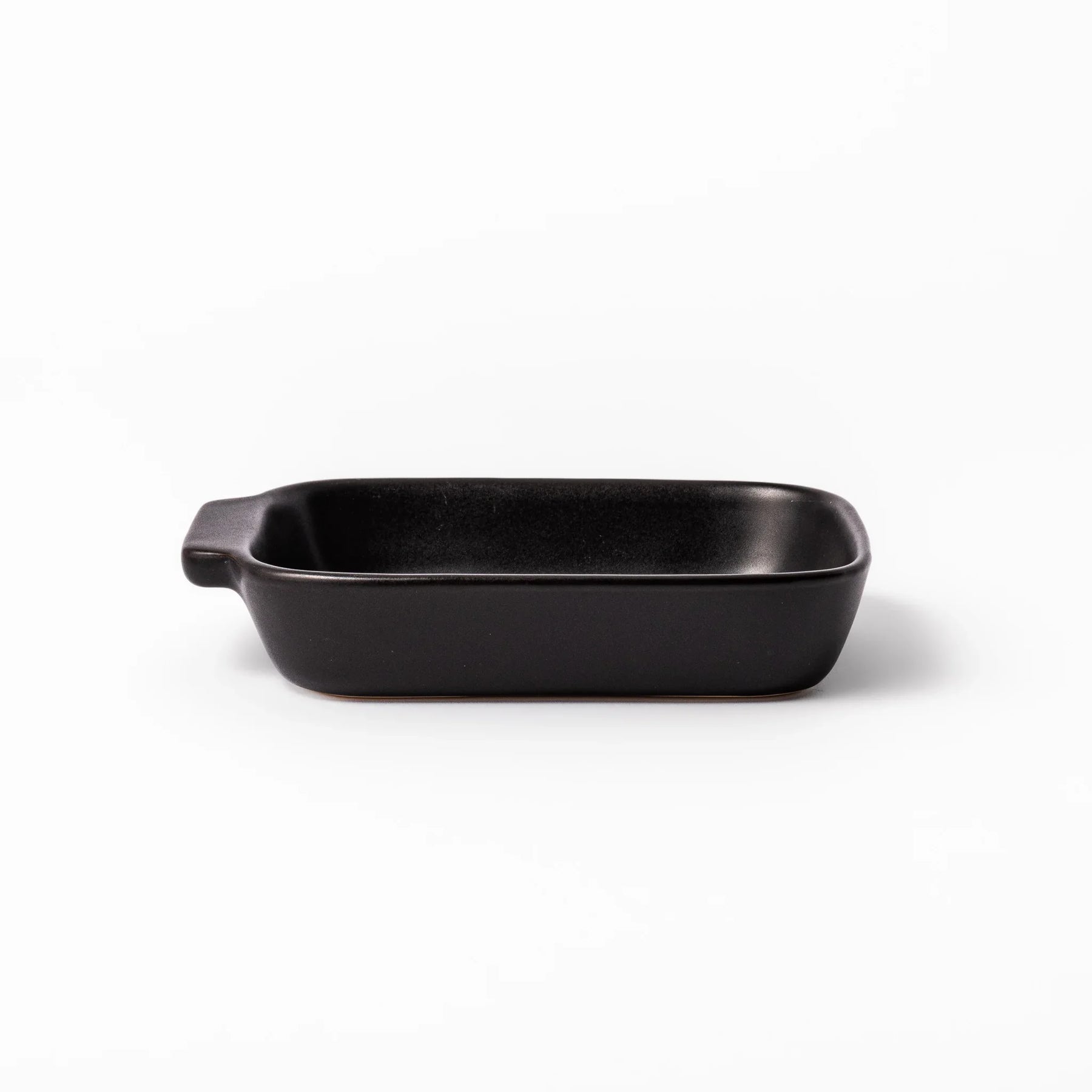 Warm, simple meals made easy. The Black Wave Baking Dish is a compact, heat resistant ceramic dish that brings convenience and comfort to everyday cooking. Its wave ridges and deep form help food cook evenly, while the sleek black glaze adds a modern, understated touch. A small side handle makes it easy to carry straight from oven to table.