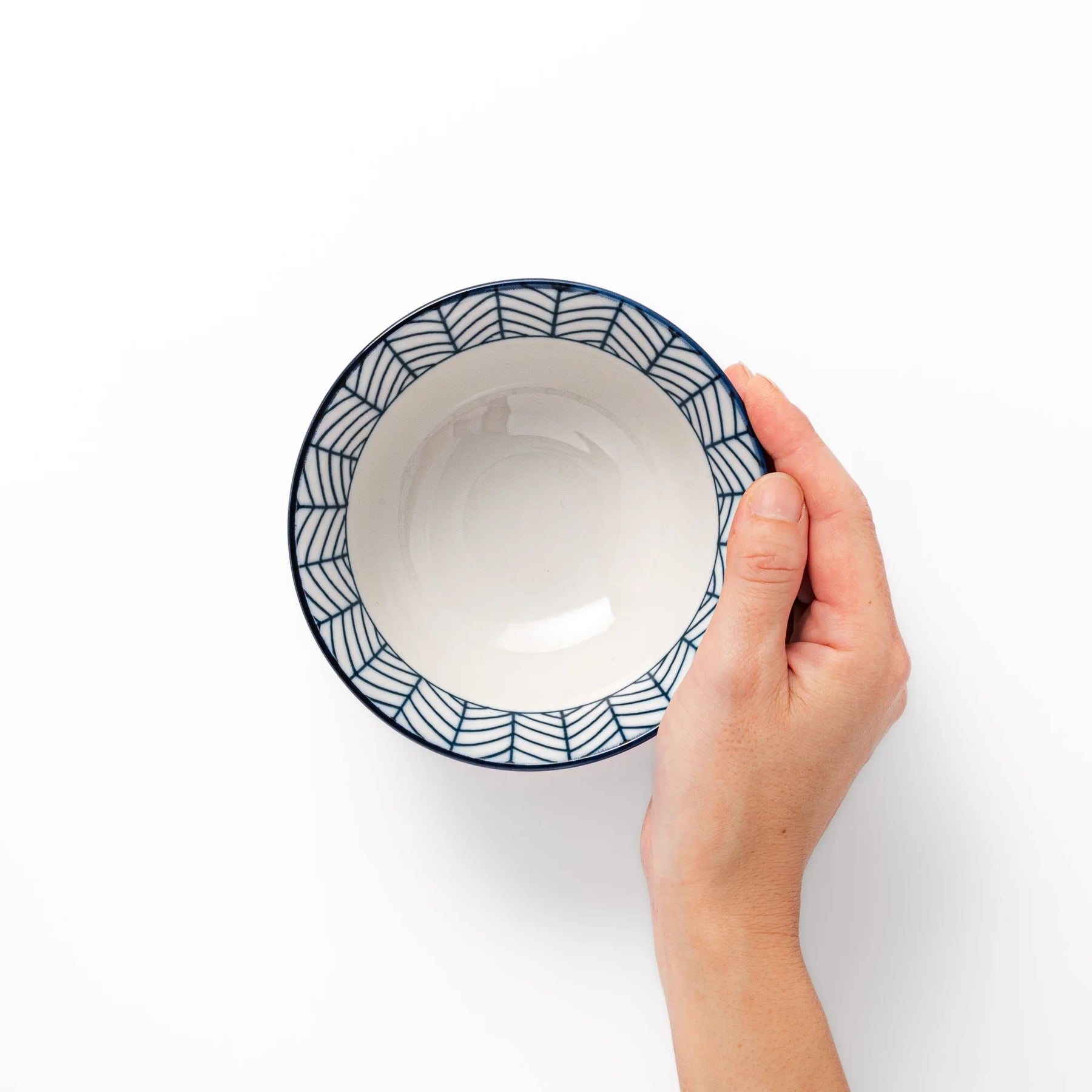 Inspired by the traditional yabane (arrow feather) motif, the Arrow Feather Rice Bowl features a bold, symmetrical pattern representing strength, focus, and protection. The repeating chevron design draws the eye upward and outward, creating a dynamic visual flow.
