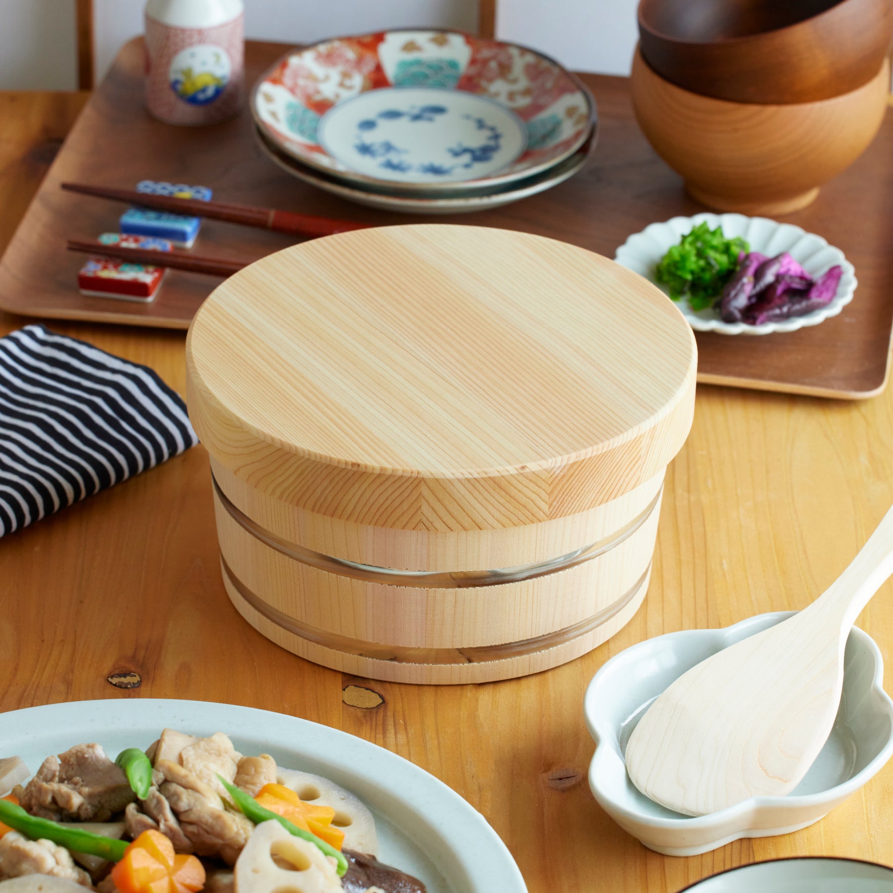 Keep freshly steamed rice at its best with the Wooden Storage Bowl for Cooked Rice, known as ohitsu in Japan. Made from natural sawara cypress, this traditional vessel gently absorbs excess moisture, helping rice remain light, fluffy, and pleasantly textured even after cooking is complete. The wood’s subtle fragrance adds a comforting touch, elevating the simple act of serving rice.