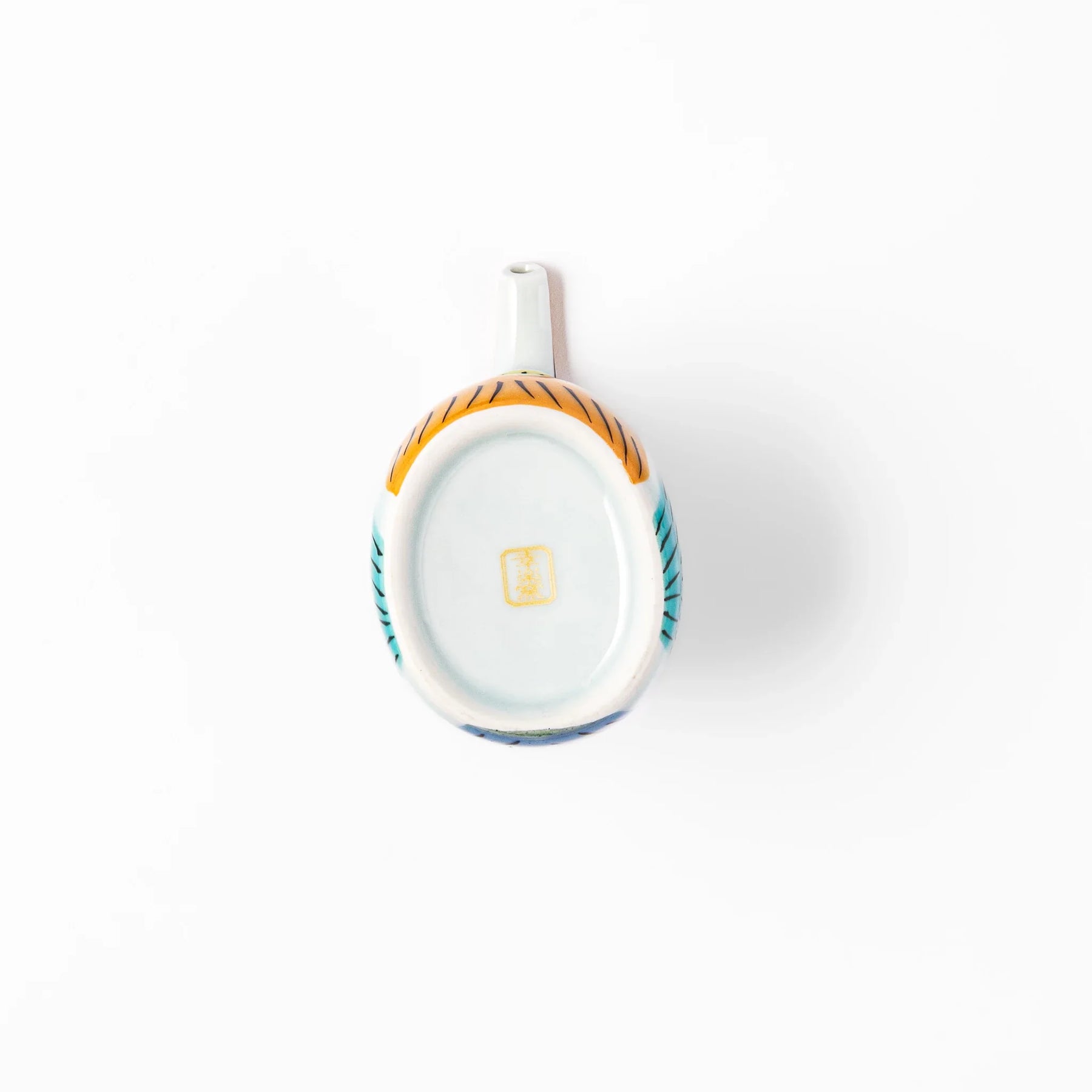 The Kingfisher Soy Sauce Dispenser is a charming piece of Arita Ware, shaped in the form of a colorful kingfisher. In Japan, this bird is admired as a symbol of harmony and good fortune, its presence believed to bring balance and happiness. The lively design, with turquoise green wings, warm orange tones, and fine hand-painted details, captures the bird’s spirited character while adding a playful elegance to the table.